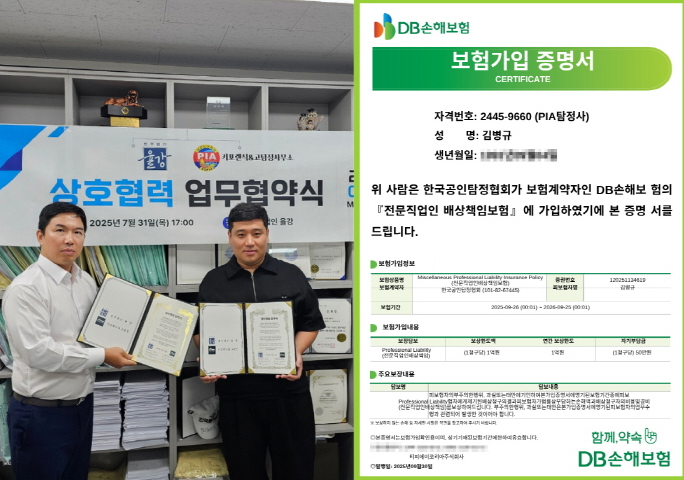 책임보험을 한국 최초로 고탐정사무소에서 가입했습니다.